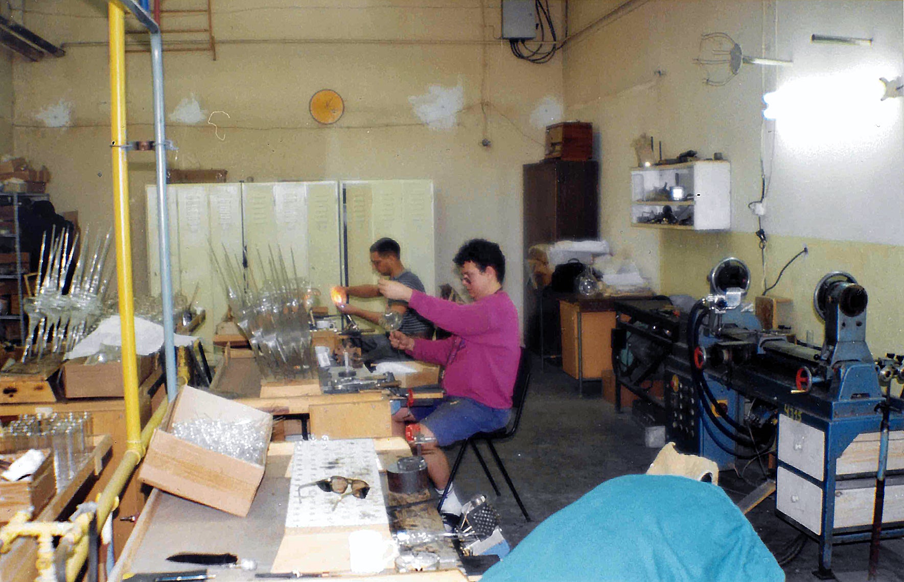 Production, the teaching of younger glassblowers and the most closely guarded technical secrets remain in the hands of his father, Petru Stefanescu, who still comes to the workshop daily at eighty-one years old. Around them works a team of roughly ten glassblowers, supported by several artisans in auxiliary production roles and a small office and sales team.
