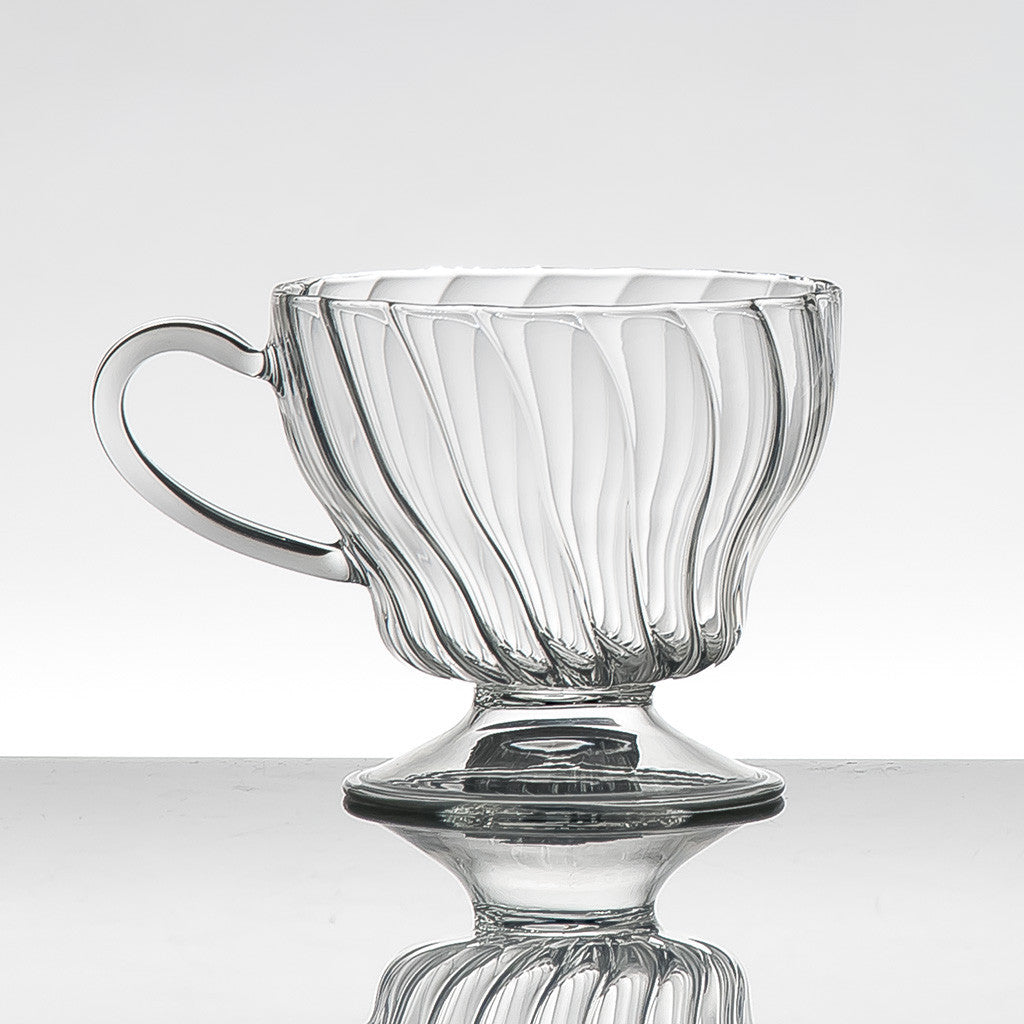 The ARABESQUE WIDE Teacup designed by Gabriela Seres has been inspired by the Oriental and Byzantine artforms. It is completely handmade in the workshop in Bucharest, Romania. The twist of line glass creates a unique look that is enhanced by the tea color.